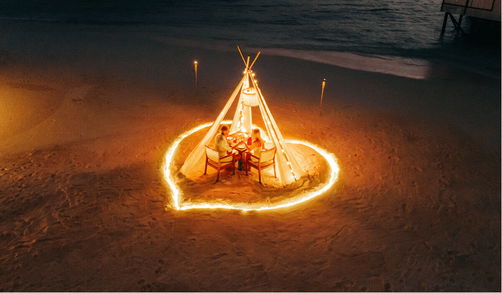 As the sun slopes toward the horizon, a collection of fine dining menus awaits you. Indulge in a candlelit dinner by the beach or at the Nava Pavilion, a secluded wooden platform with a breathtaking lagoon view.