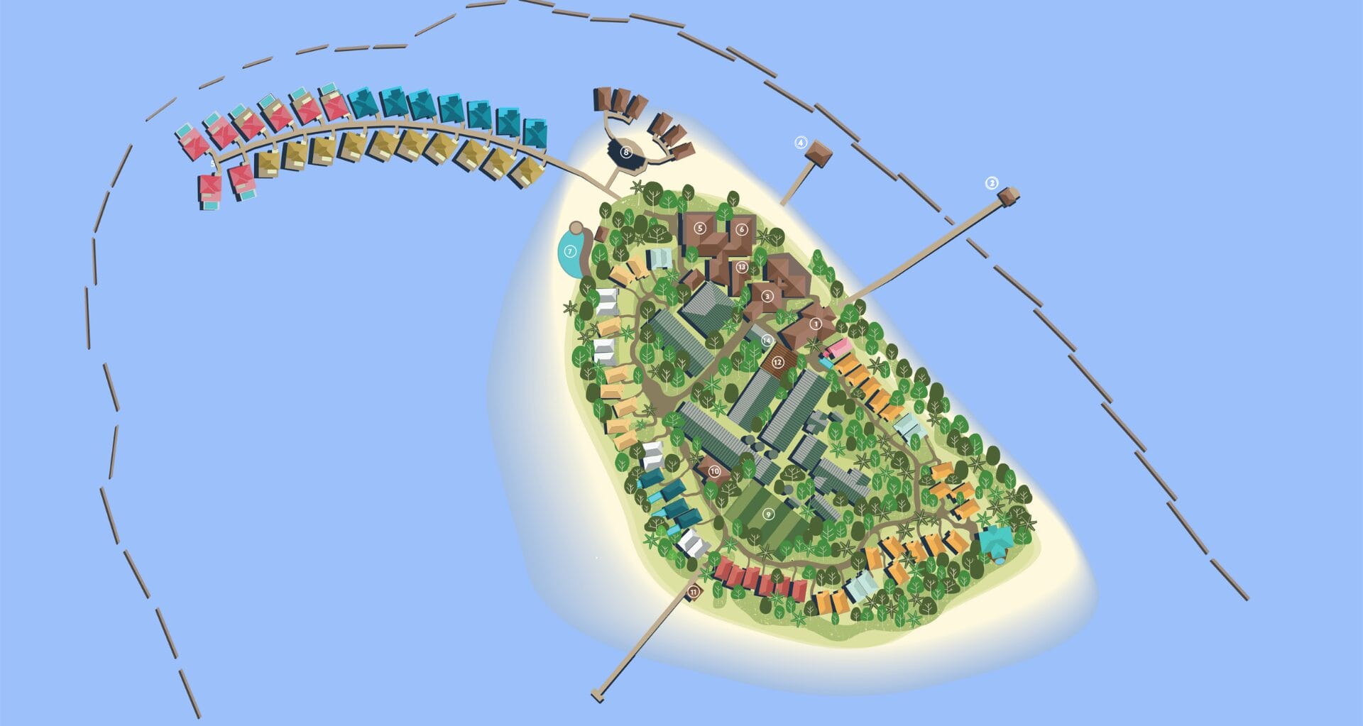 Located in South Ari Atoll, Nova is just a 25-minute seaplane journey away from Velana International Airport. Our laidback natural island is a place with true soul, designed to inspire creativity, nurture real connections and spark joy. Navigate through the 76 beach and water villas, three restaurants and two bars with this detailed resort map. Find exactly where you need to be to create your good soul days.
